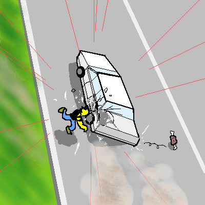 シマ次郎はTOMYの車に体当たりをブチかましたのだ。