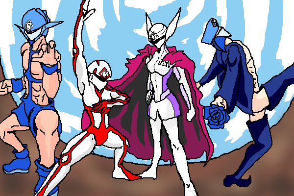 NR・ホワイト「そこまでよ!!悪徳革命商会。 R・ブルー「戦場を縦横無尽に駆け回る蒼き閃光・レボリューブルー」 R・ブルーローズ「殺伐とした戦場の中で一際輝く一輪の蒼き薔薇・レボリューブルーローズ」 R・レッド「戦場を焼き尽くす地獄の業火紅きトップガン・レボリューレッド」 …決まった 悪徳革命商会は全滅した…