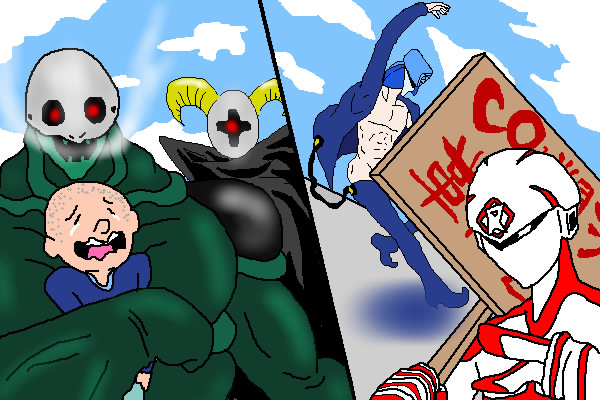「革命が新たなる革命を生む」 革命戦隊 レボリューダー 第十三次革命「試練の時」 革命学園 〜金曜日の放課後〜 金髪の悪友・哲夫「勤(つとむ)明日どこかに遊びに行こうぜ」 勤と呼ばれた18歳の少年、フルネームは赤蝮勤(あかまむしつとむ)、知る人ぞ知るレボリューレッドその人である。 勤「悪ぃ土、日は革命デパートの屋上でヒーローショーのバイトなんだよ。これからミーティングがあるんだ。じゃあな」 〜土曜日〜 彩音「昨日も説明したけどもう一度するわよ。これはヒーローショーとは名ばかりの実戦訓練よ。怪人は二人、前に捕獲した怪人を使用。しかしお客さんもいるわ、特に子供が多い、その人達を守りながら怪人を殲滅するのがローズ、レッド、あなた達の役目よ」 R・レッド「大丈夫なのかよ、本当に」 彩音「一応、怪人達は私達の制御下にあるけど、何かあったら何とかしなさい」 R・レッド「…了解」 彩音「あなた達二人はレボリューダーになって日が浅いわ、だから油断しないように。武器の扱いにも慣れておきなさい」