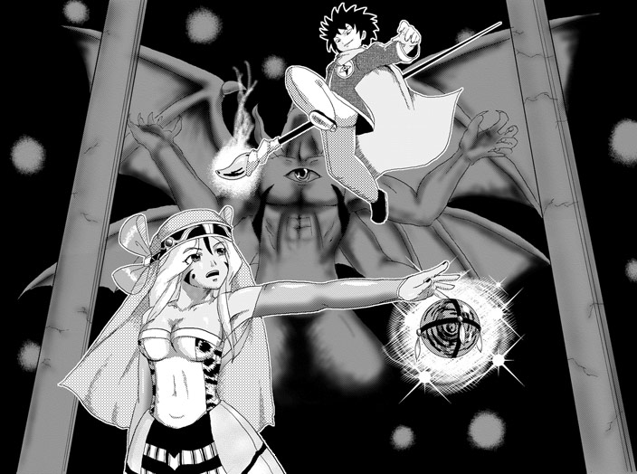 邪教徒との対決!!って感じにしたかったんですが、背景で力尽きたためイマイチ。